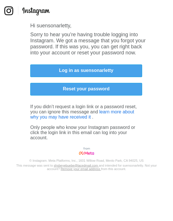 To: shsbeyebuebe@lacedmail.com From: security@mail.instagram.com Received: 2026-02-26 00:27:32.162677