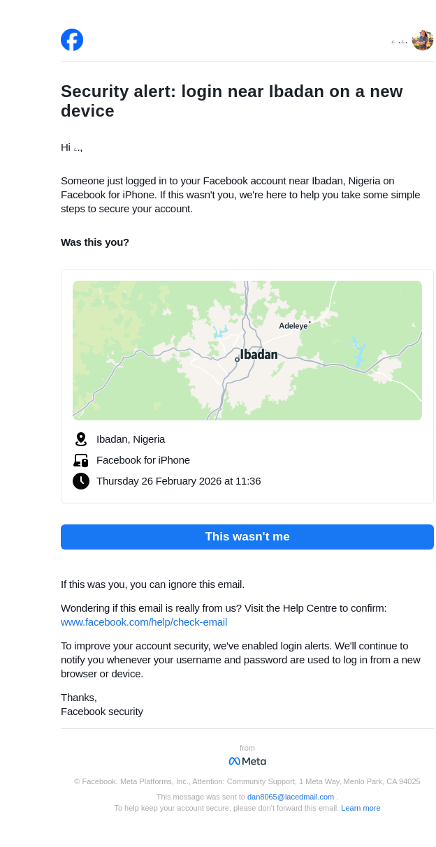 Did you just log in near Ibadan on a new device?