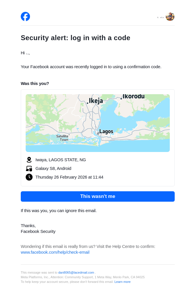 From: security@facebookmail.com