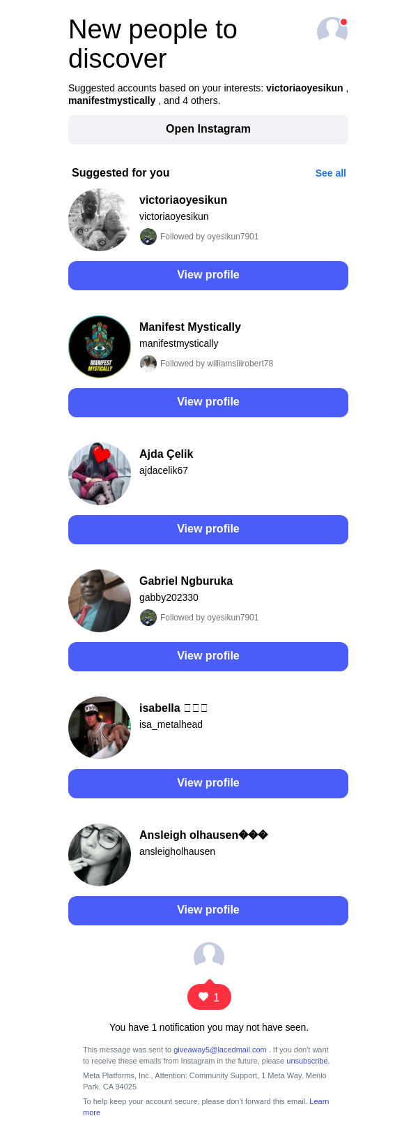 To: giveaway5@lacedmail.com From: follow-suggestions@mail.instagram.com Received: 2026-02-27 15:41:32.986806