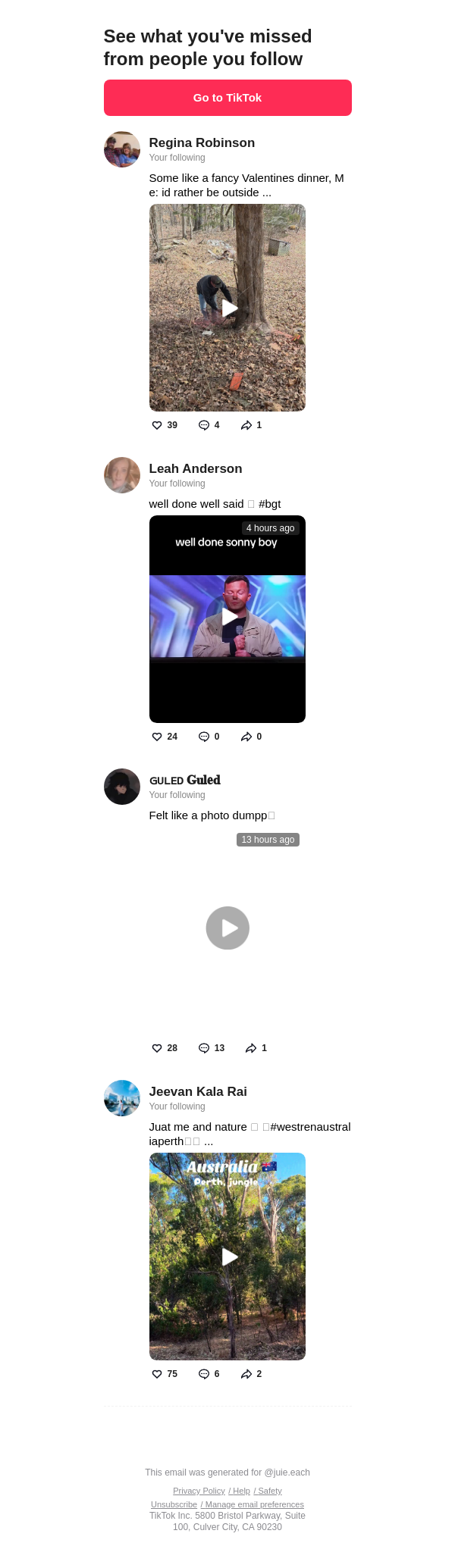 To: jullieleach242@lacedmail.com From: notification@service.tiktok.com Received: 2026-03-01 14:42:48.441872
