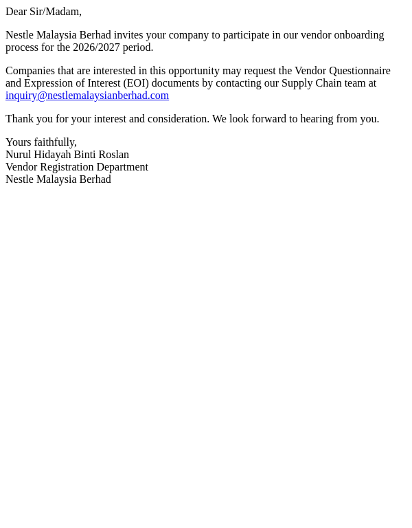 Vendor invitation (2026-2027)