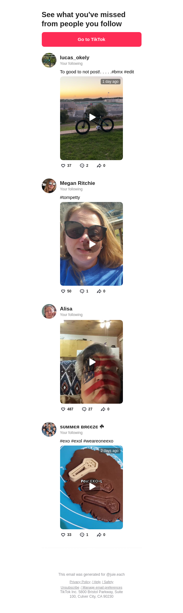 To: jullieleach242@lacedmail.com From: notification@service.tiktok.com Received: 2026-03-02 14:50:49.578187
