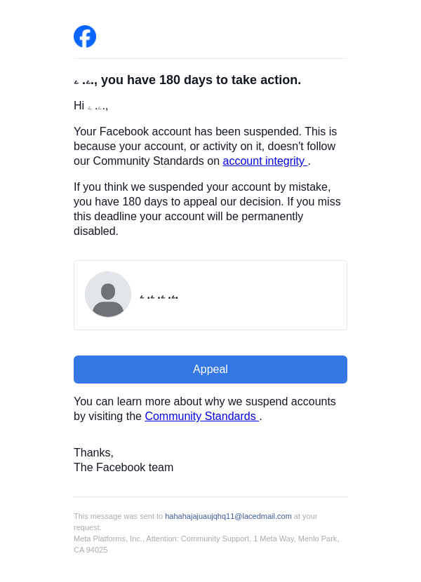 To: hahahajajuaujqhq11@lacedmail.com From: security@facebookmail.com Received: 2026-03-02 20:50:06.293261