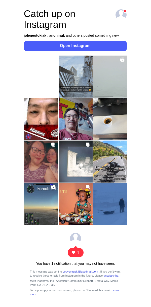 To: codyevagek@lacedmail.com From: posts-recaps@mail.instagram.com Received: 2026-03-03 14:14:47.701289