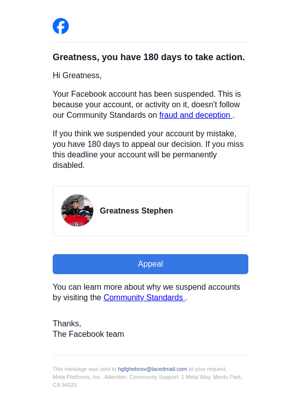 Action needed on your Facebook account