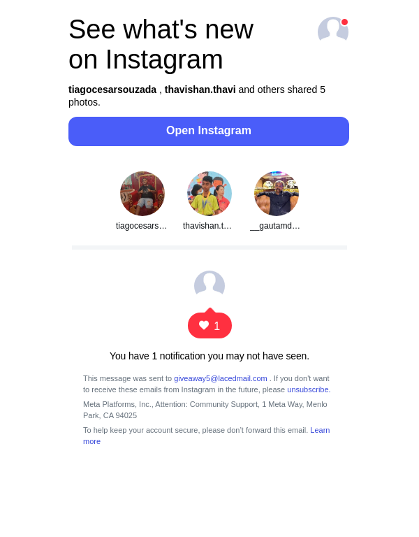 To: giveaway5@lacedmail.com From: posts-recap@mail.instagram.com Received: 2026-03-05 20:35:55.913036