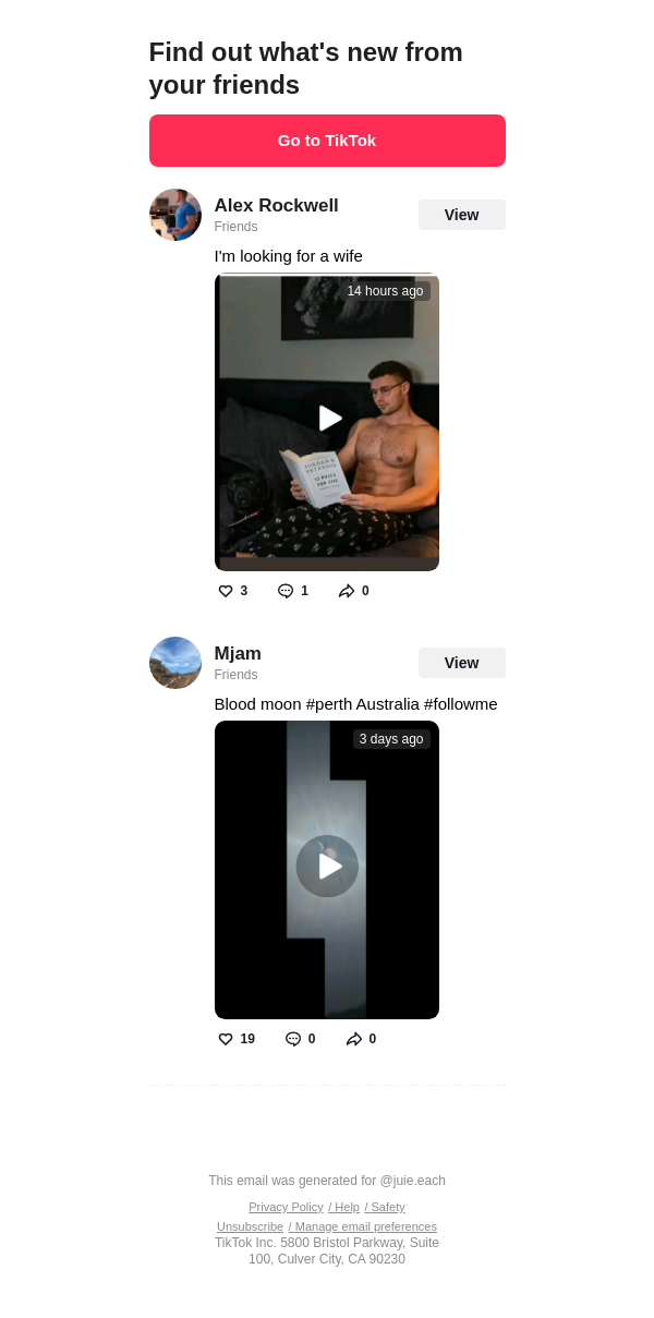 To: jullieleach242@lacedmail.com From: notification@service.tiktok.com Received: 2026-03-06 14:08:08.250084