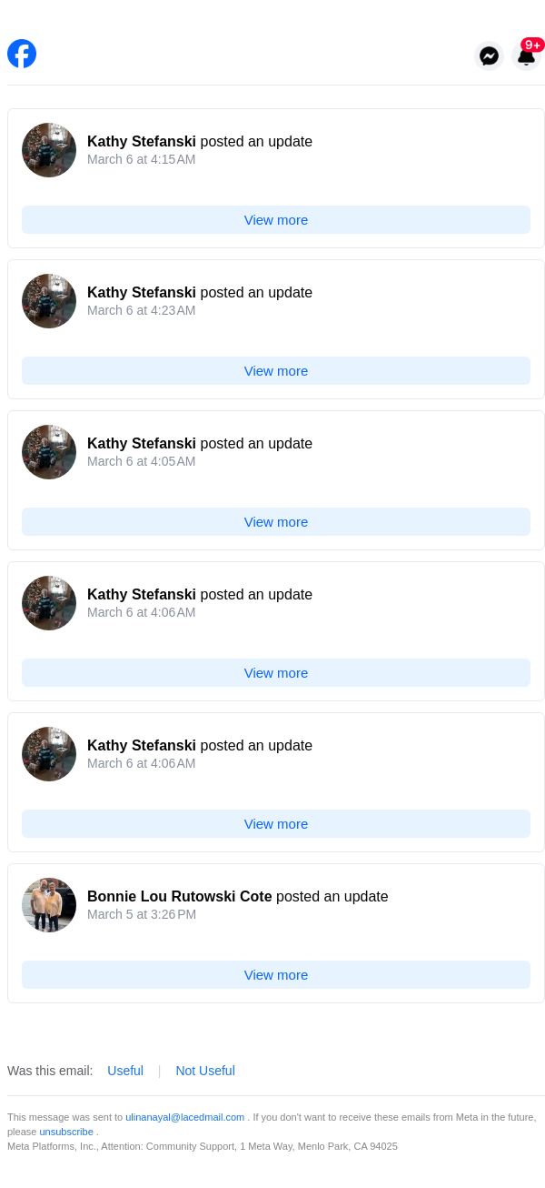 To: ulinanayal@lacedmail.com From: notification@facebookmail.com Received: 2026-03-06 16:43:17.688393