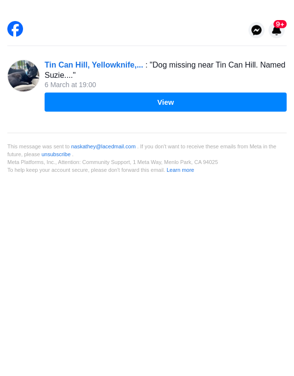 Tin Can Hill, Yellowknife, Northwest Territories: "Dog missing near Tin Can..."
