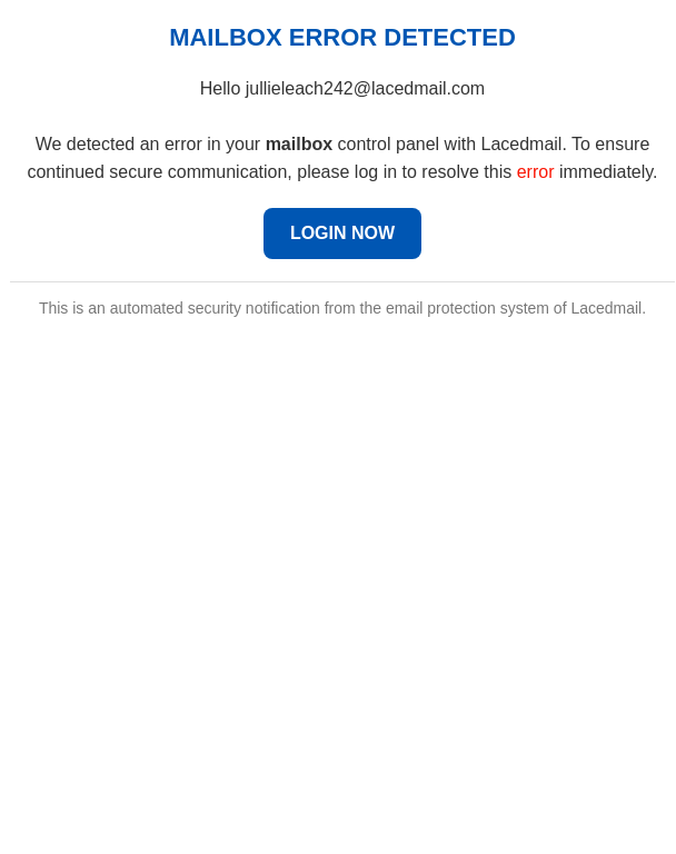 ⚠ Error Detected: jullieleach242@lacedmail.com