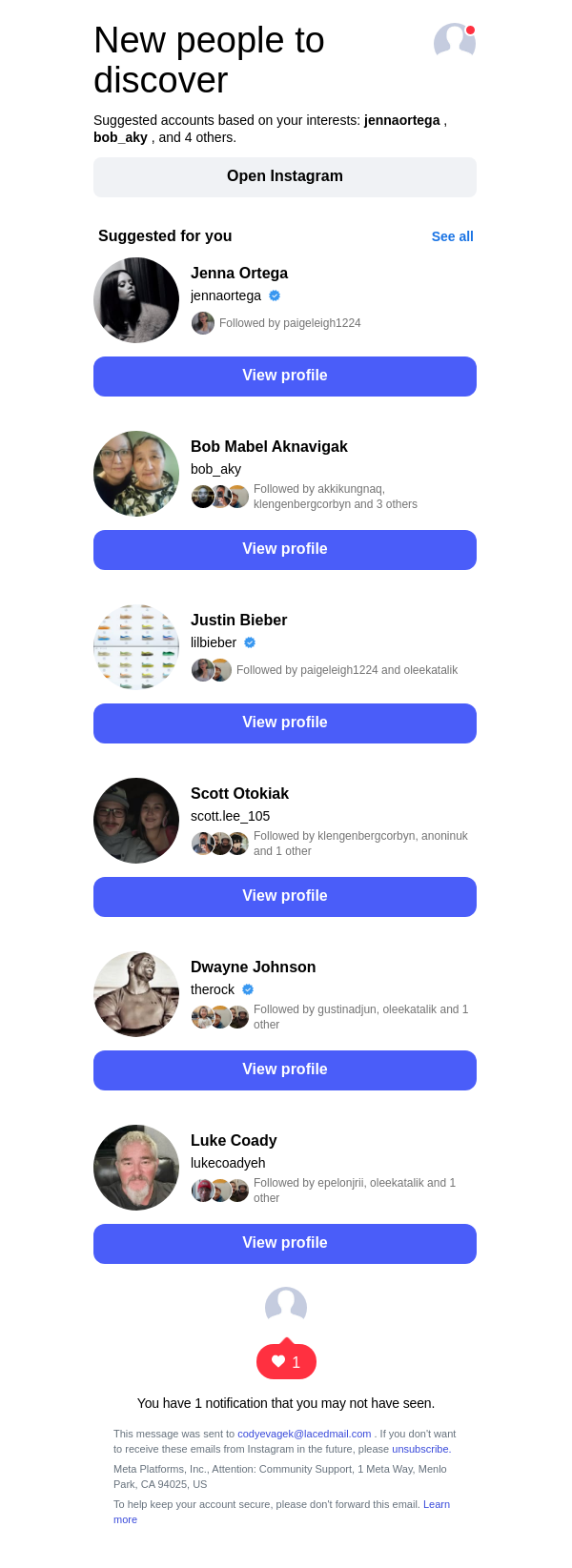 To: codyevagek@lacedmail.com From: follow-suggestions@mail.instagram.com Received: 2026-03-07 13:35:56.456178