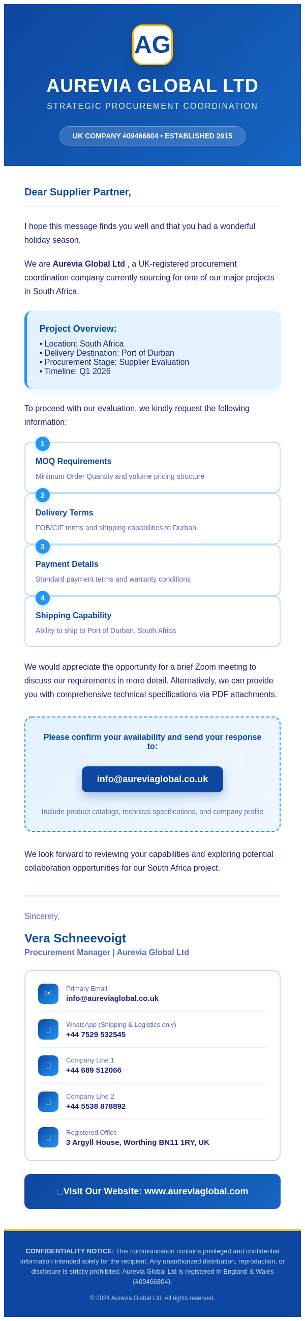 Zoom Meeting Request - Aurevia Global Ltd Procurement Team
