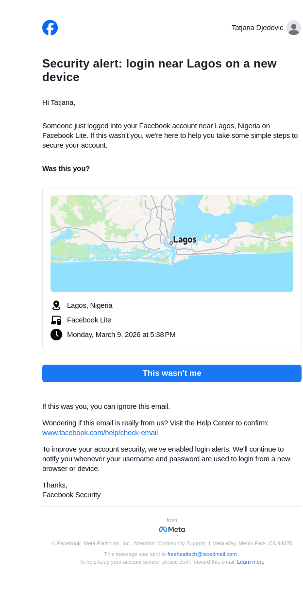 Did you just log in near Lagos on a new device?