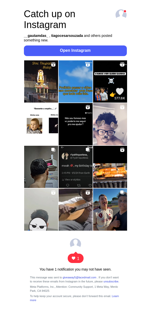 To: giveaway5@lacedmail.com From: posts-recaps@mail.instagram.com Received: 2026-03-09 19:38:15.420567