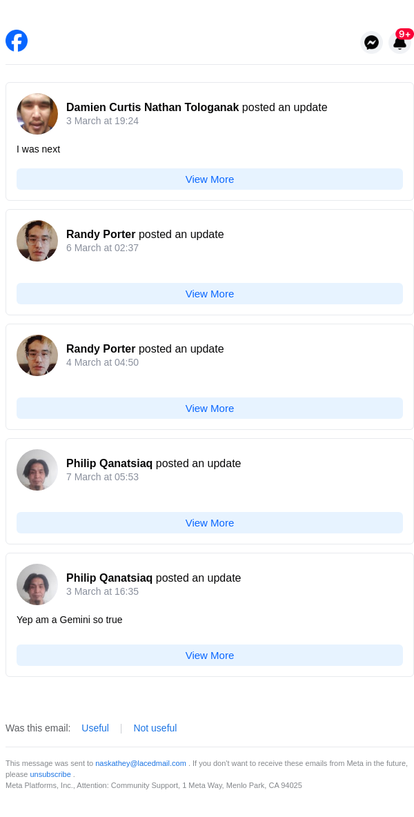 From: notification@facebookmail.com
