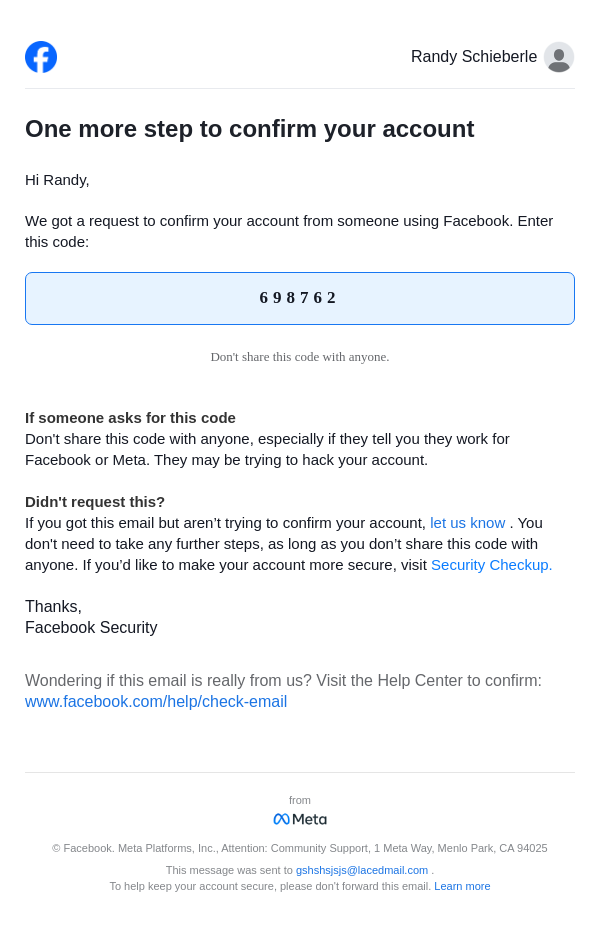 From: security@facebookmail.com