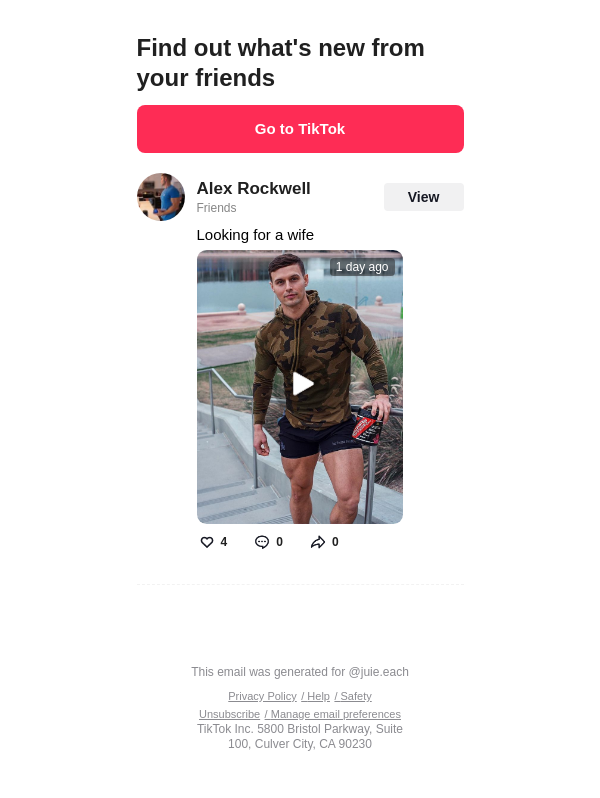 To: jullieleach242@lacedmail.com From: notification@service.tiktok.com Received: 2026-03-11 14:03:24.218703