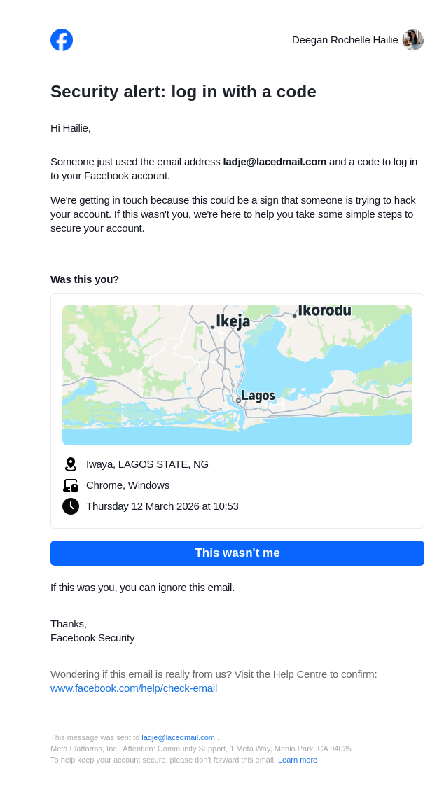From: security@facebookmail.com