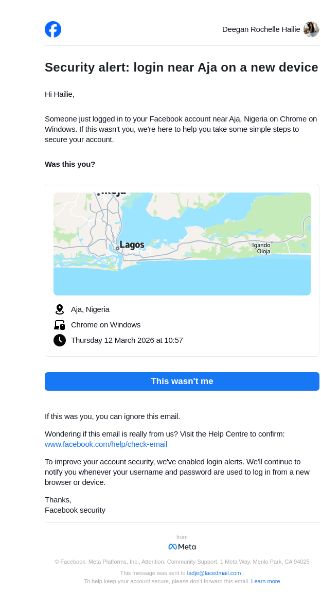 From: security@facebookmail.com