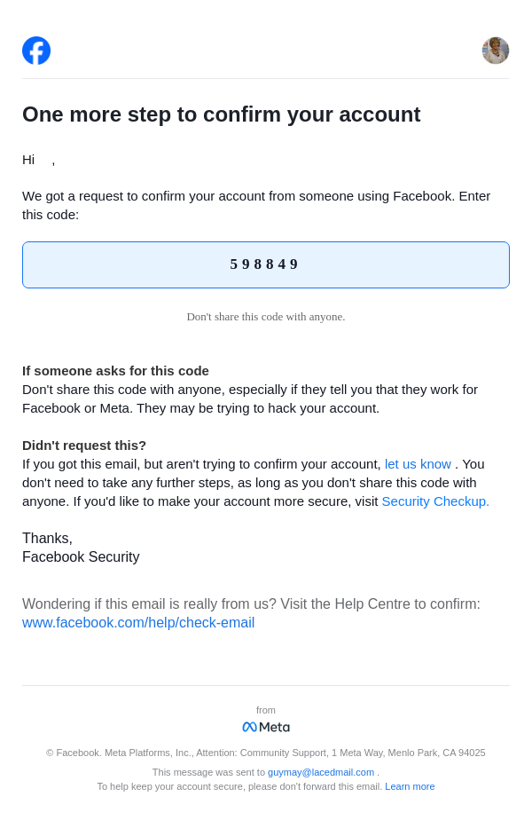 From: security@facebookmail.com