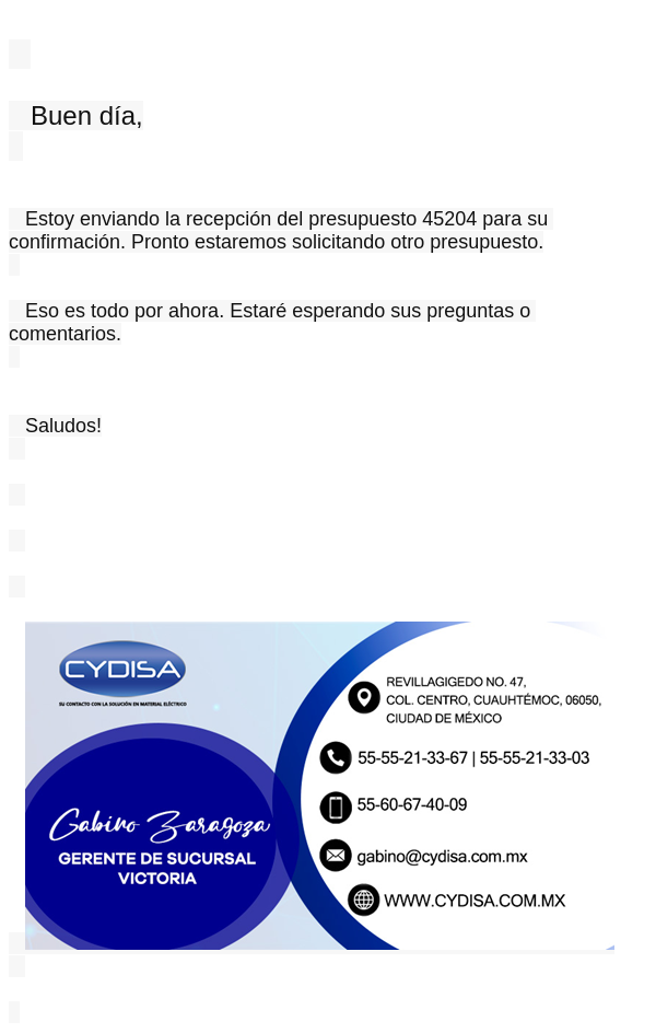 CONFIRMACIÓN DE RECEPCIÓN PARA COTIZACIÓN 45204