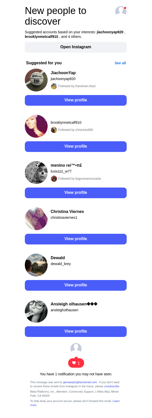 To: giveaway5@lacedmail.com From: follow-suggestions@mail.instagram.com Received: 2026-03-14 20:52:33.848948