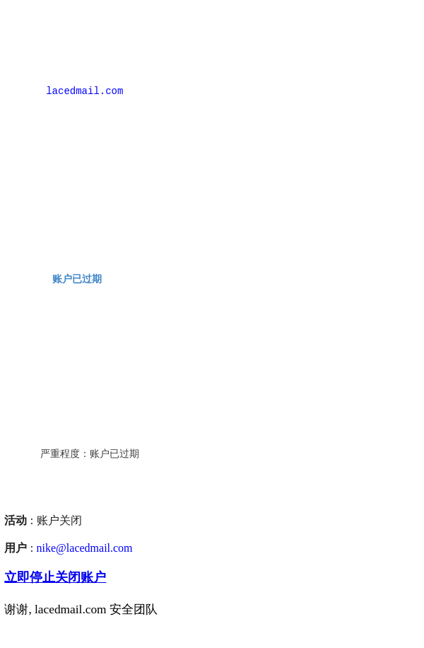 您的账户已过期,请立即采取行动,否则您的账户将被删除。