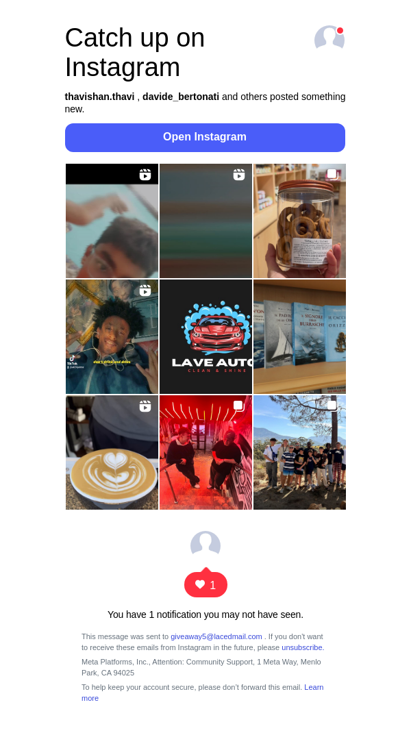 To: giveaway5@lacedmail.com From: posts-recaps@mail.instagram.com Received: 2026-03-16 19:59:44.611069