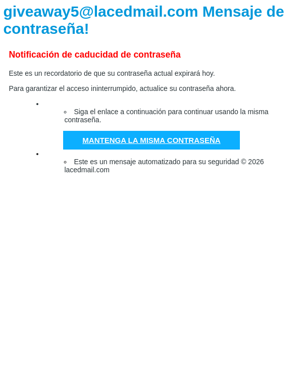 lacedmail.com ContraseƱa para giveaway5@lacedmail.com Caduca hoy!