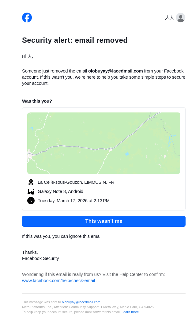 From: notification@facebookmail.com
