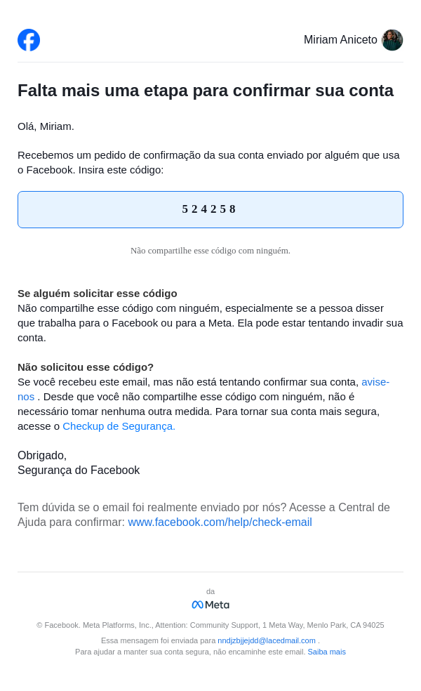 Seu código do Facebook é 524258