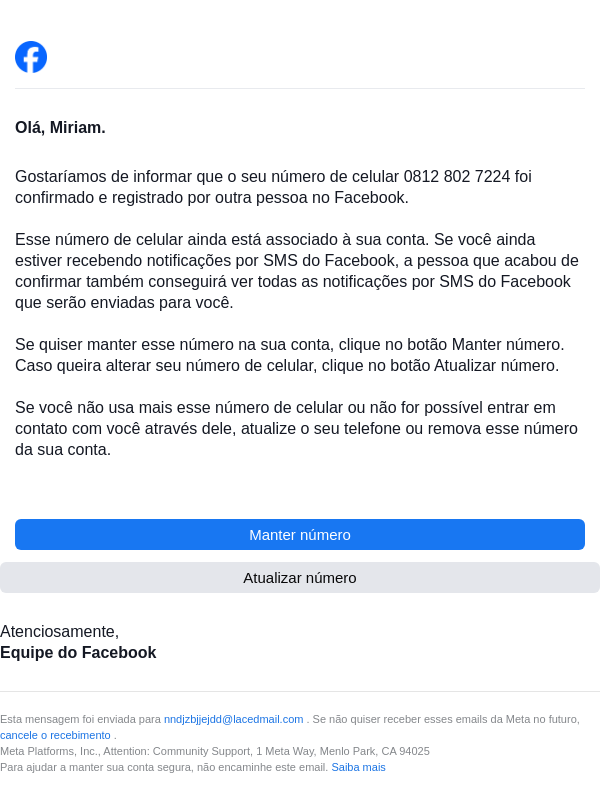 Atualização sobre o seu número de celular no Facebook