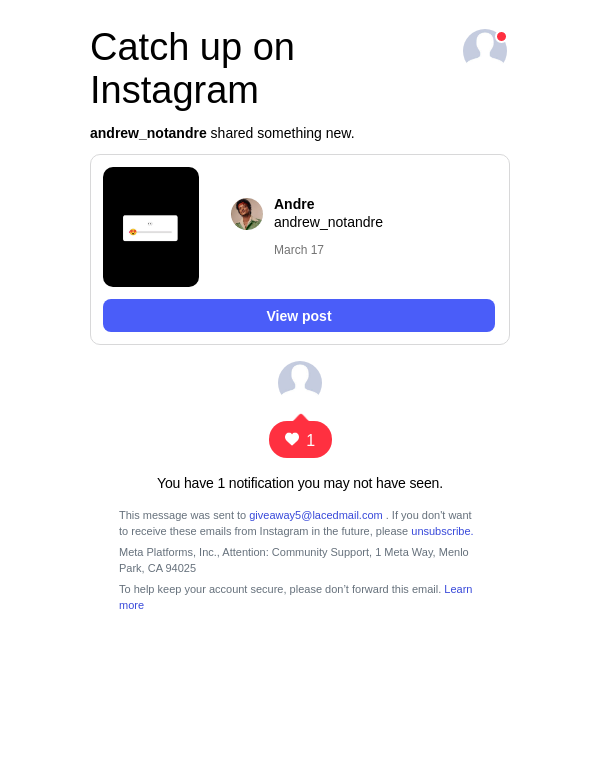 To: giveaway5@lacedmail.com From: posts-recap@mail.instagram.com Received: 2026-03-20 20:39:41.110266