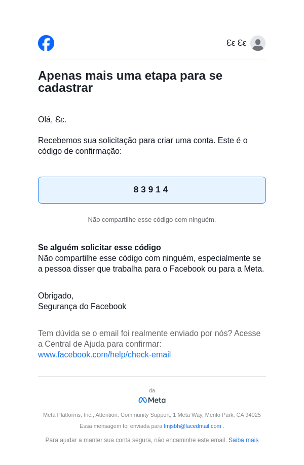 83914 é seu código de confirmação