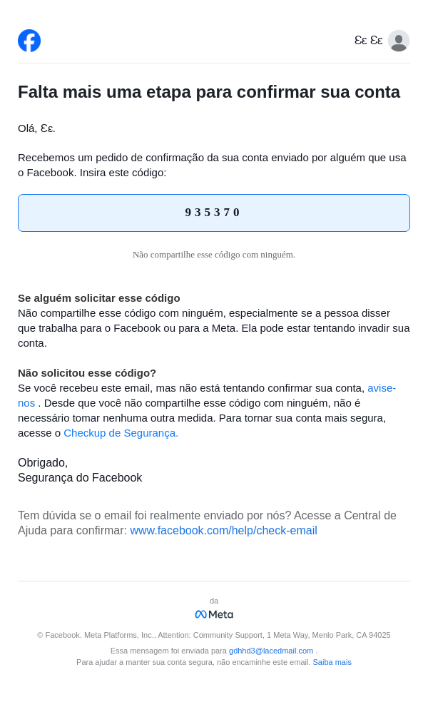 Seu código do Facebook é 935370