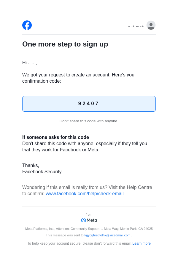 To: kgyorjteetjydhk@lacedmail.com From: registration@facebookmail.com Received: 2026-03-22 18:42:20.716544