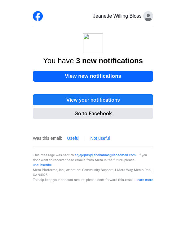 To: aajejejrnsjdjebebarnas@lacedmail.com From: reminders@facebookmail.com Received: 2026-03-22 19:58:14.923855