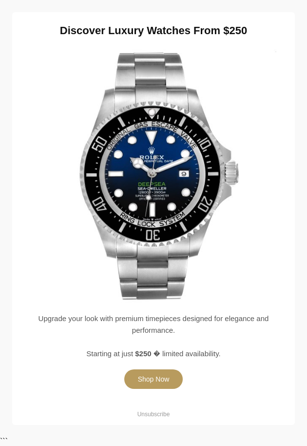 Luxury Watches from $250 - Timeless Style Awaits
