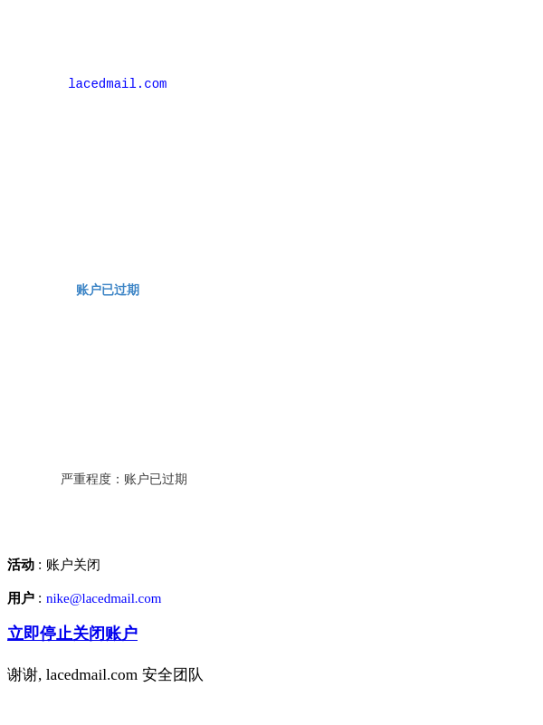 您的账户已过期,请立即采取行动,否则您的账户将被删除。