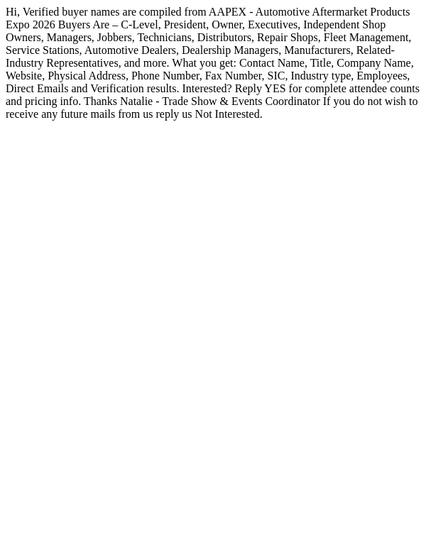 Fresh Prospects List – AAPEX - Automotive Aftermarket Products Expo 2026
