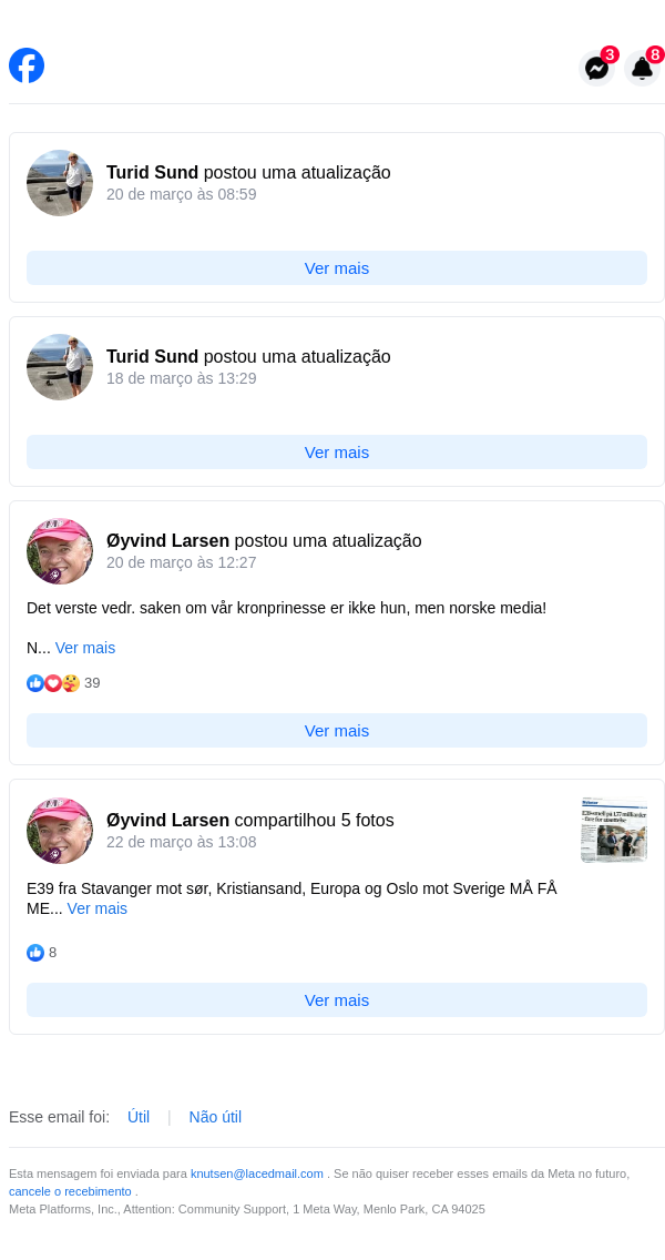 4 posts mais relevantes no Facebook: posts de Turid Sund e Øyvind Larsen