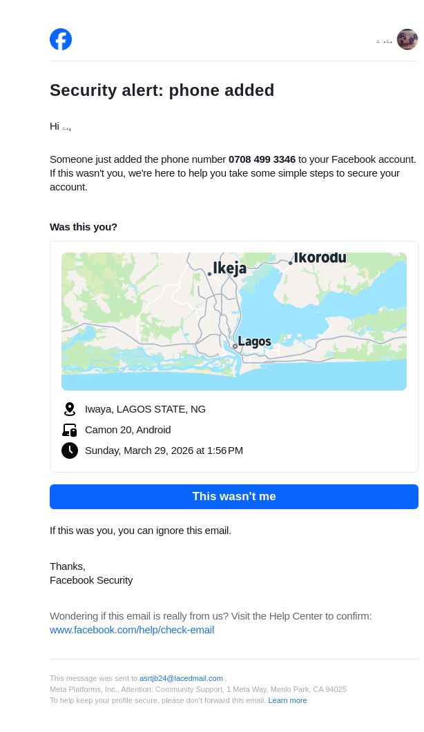 From: notification@facebookmail.com