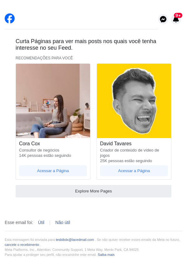 Você tem 2 novas sugestões de Páginas incluindo Cora Cox.