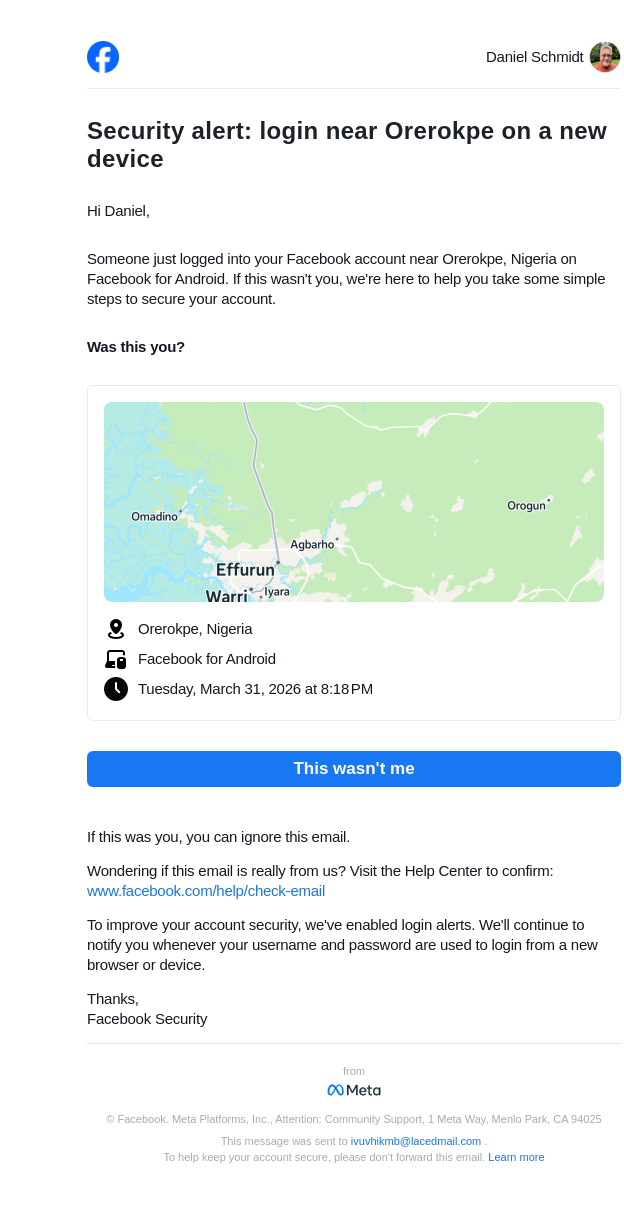 From: security@facebookmail.com