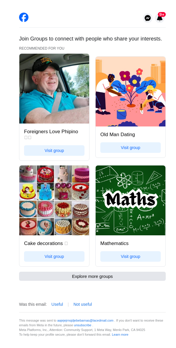 To: aajejejrnsjdjebebarnas@lacedmail.com From: groupupdates@facebookmail.com Received: 2026-04-02 05:35:01.328828