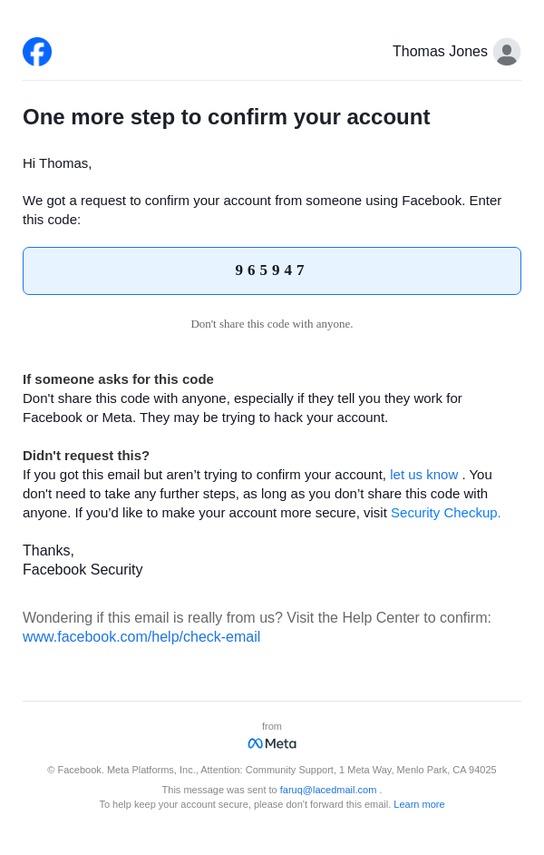 From: security@facebookmail.com