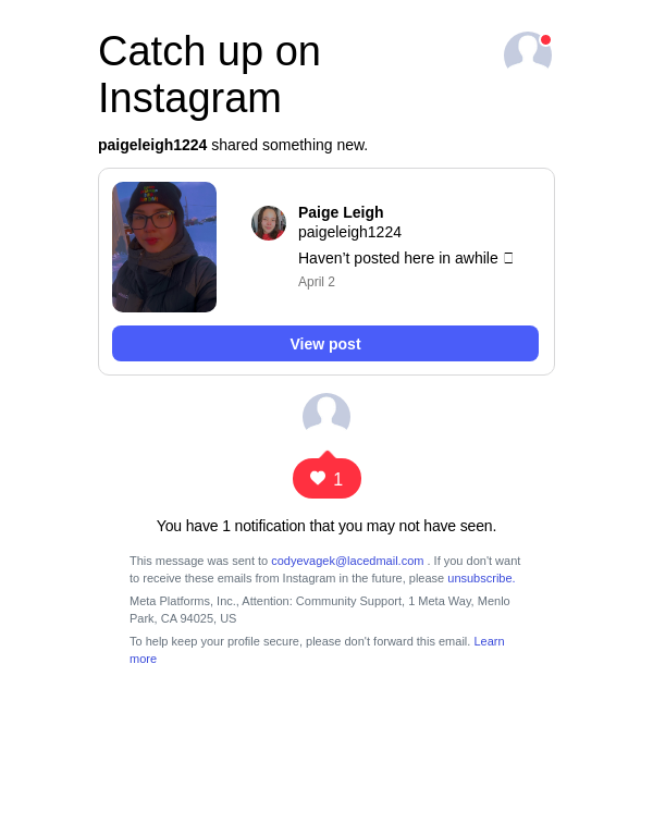 To: codyevagek@lacedmail.com From: posts-recap@mail.instagram.com Received: 2026-04-03 12:51:23.117232