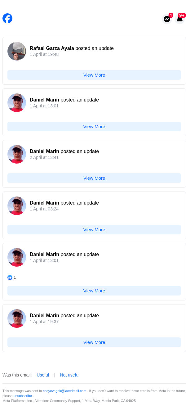 To: codyevagek@lacedmail.com From: notification@facebookmail.com Received: 2026-04-04 13:19:03.991291