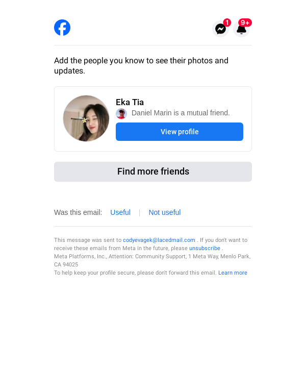 To: codyevagek@lacedmail.com From: friendsuggestion@facebookmail.com Received: 2026-04-05 18:27:17.136688